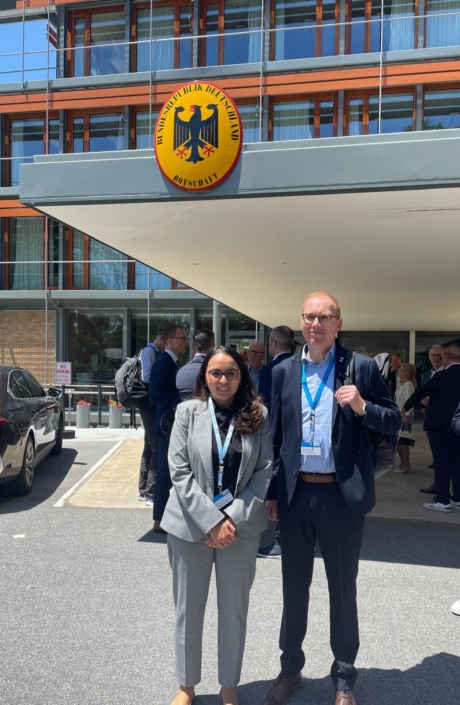 Im Gepäck hatte Thomas Engel eine zweisprachige „ZeTT-Radar Special Edition“. Diese Sonderausgabe bringt die für US-Wirtschaftsvertreter wichtige Einschätzung über die aktuelle Lage im Freistaat auf den Punkt: „Thüringen: Das Land der versteckten Ideen auf der Suche nach Kapital“, so der Titel des Papiers, das verschiedenen amerikanischen Gesprächspartnern vorgestellt wurde. Unter anderem überreichte Thomas Engel die „Special Edition“ am Rande eines Treffens mit deutschen und amerikanischen Wirtschaftsvertretern in der Deutschen Botschaft an Amal Khaled, Senior Manager bei der Deutsch-Amerikanischen Handelskammer (AHK-Delegation of German Industry and Commerce in Washington, D. C.). Sie signalisierte großes Interesse an den Aktivitäten des ZeTT und verwies mit Blick auf den ZeTT-Radar auf eine eigene aktuelle Erhebung unter deutschen Unternehmen und Niederlassungen in den USA (siehe GABO-Umfrage: https://ahk-usa.net/gabo). Diskutiert wurden bei der Veranstaltung auch die unterschiedlichen Einschätzungen über die aktuellen zollpolitischen Entwicklungen.